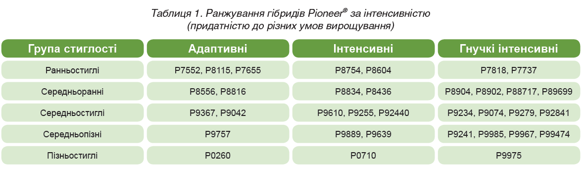 Отже, навіть найвибагливіший господар зможе знайти у портфелі кукурудзи Pioneer® гібрид, який повністю розкриє свій потенціал у конкретних умовах господарювання і забезпечить високу прибутковість (таблиця 1).