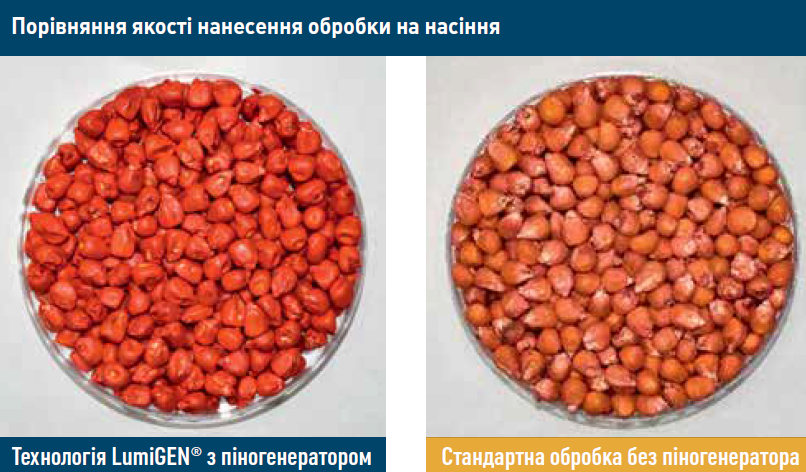 В Україні на виробничому комплексі Corteva у Полтавській області стоїть найсучасніший піногенератор, який забезпечує надійне покриття насіння. Ми перевіряли це в лабораторії: вся площа насінини належно покривається, всі частини захищені рівномірно. Це важливо, адже незафарбовані ділянки насіння контактуватимуть з ґрунтом, а це вільний шлях для патогенів.