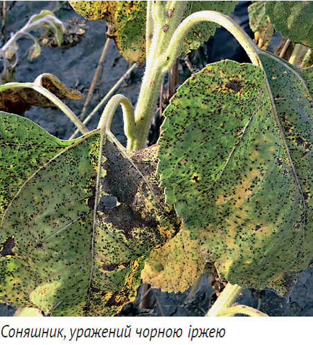 Одним із таких викликів є ЧОРНА ІРЖА СОНЯШНИКА — хвороба, яку спричиняє гриб Рuссіnіа helianthi Schw. Вона зрідка трапляється в Європі, що ускладнює відповідну селекцію в цьому напрямку. Якщо раніше ця хвороба прогресувала на близько 30% площ в Україні, то після 2020 року її поширення набуло катастрофічного рівня — понад 80–85% усіх площ, тією чи іншою мірою, уражені чорною іржею. Основна шкодочинність цієї недуги полягає в зменшенні асиміляційної поверхні листків, їх передчасному всиханні, а також використанні грибом поживних речовин для розвитку і спороношення. Це призводить до зменшення врожайності на 15–40%, а також суттєво зменшує вміст олії — від 4 до 12%, залежно від інтенсивності ураження.